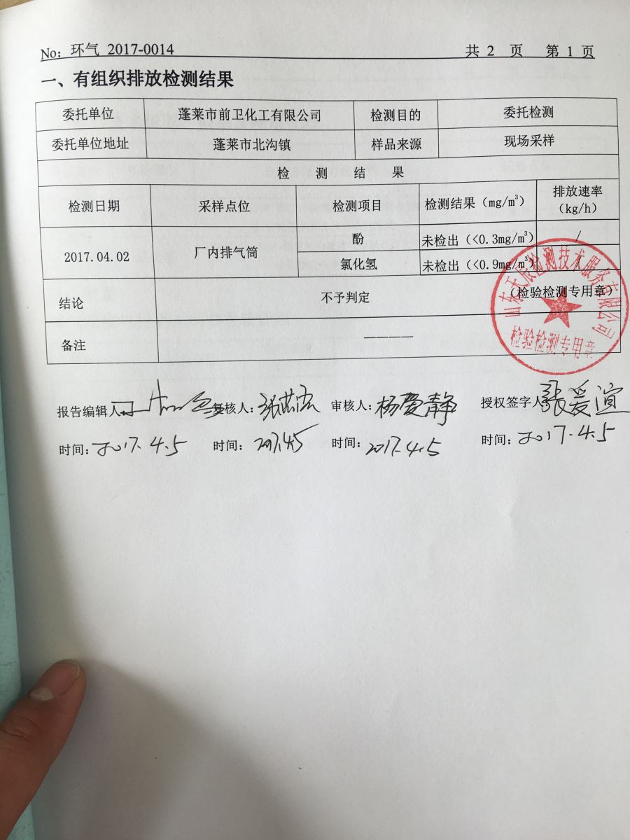 廠區(qū)有組織廢氣檢測結(jié)果